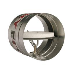 Opis Przeciwpożarowa klapa odcinająca typu CX-4S o klasie odporności ogniowej EI120 (ve i→o)S, do okrągłych przewodów wentylacyjnych. Normalnie otwarta.